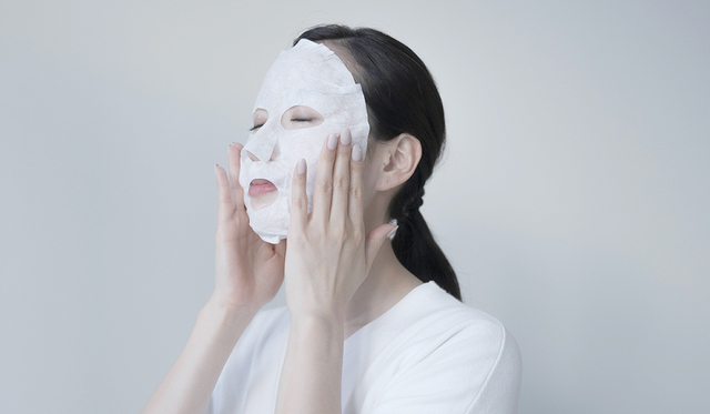 顔全体に塗り終えたら、上からコットンマスクを被せます。モチっとしたジェルにピタッと密着して、すんなりと貼ることができます。
