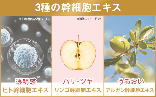 ↓エステで施述したら1回2万円はかかる高級成分「ヒト幹細胞エキス」をはじめ、話題の幹細胞エキスを贅沢に3つも配合!