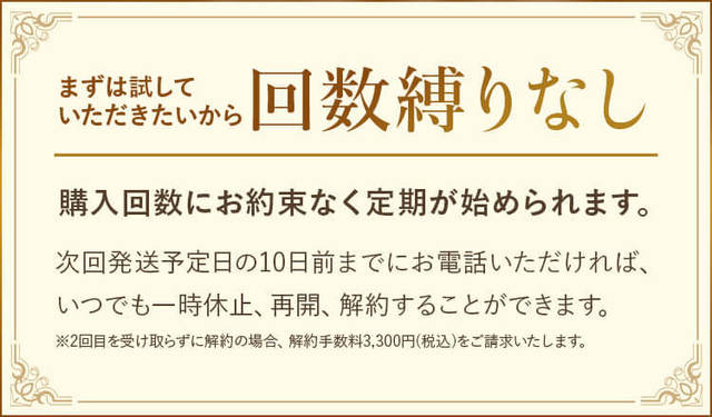 ※定期2回目を受け取らずに解約する場合のみ解約手数料3,300円(税込)が発生いたします