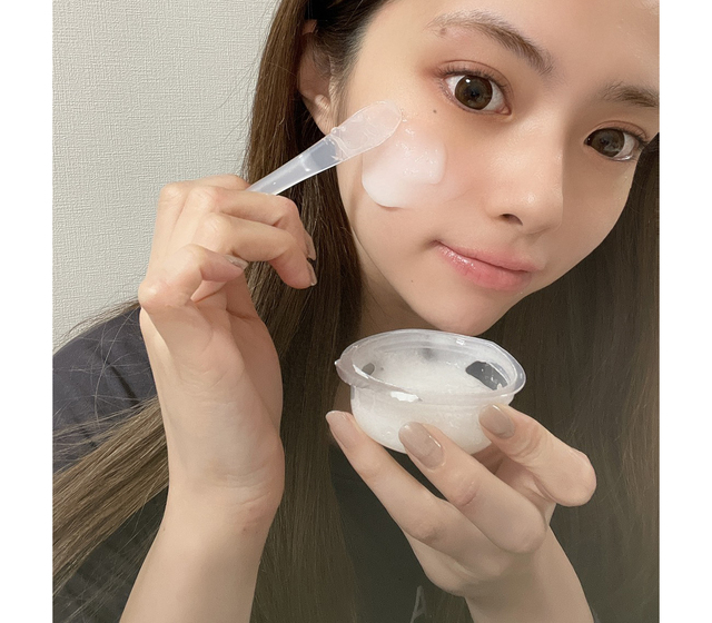 肌にのせると、ひんやりしたジェルが気持ちいい~!1回分の量はたっぷり入っているので、厚めに塗ってOK。手早く塗るのがポイント!