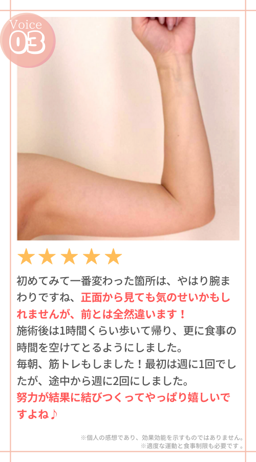 腕まわりはもちろんのこと、