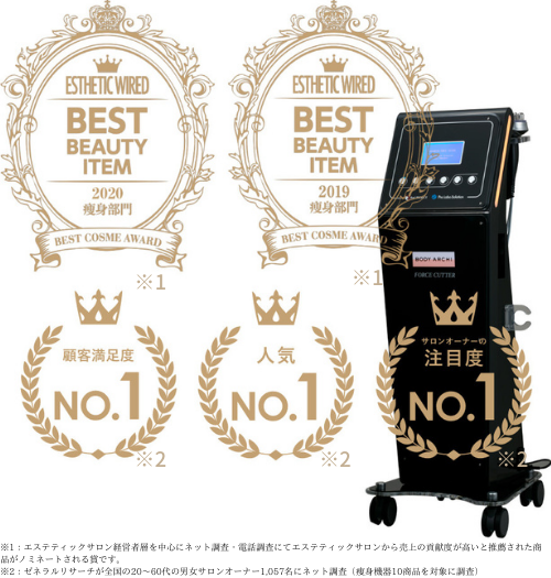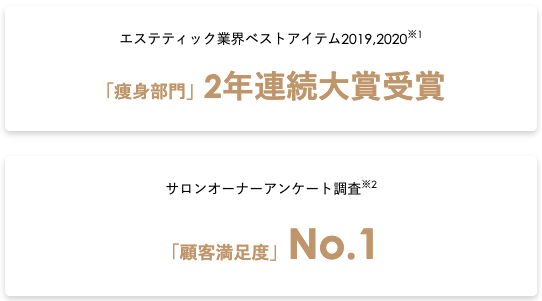 ※2:ゼネラルリサーチが全国の20~60代の男女サロンオーナー1,057名にネット調査(痩身機器10商品を対象に調査)