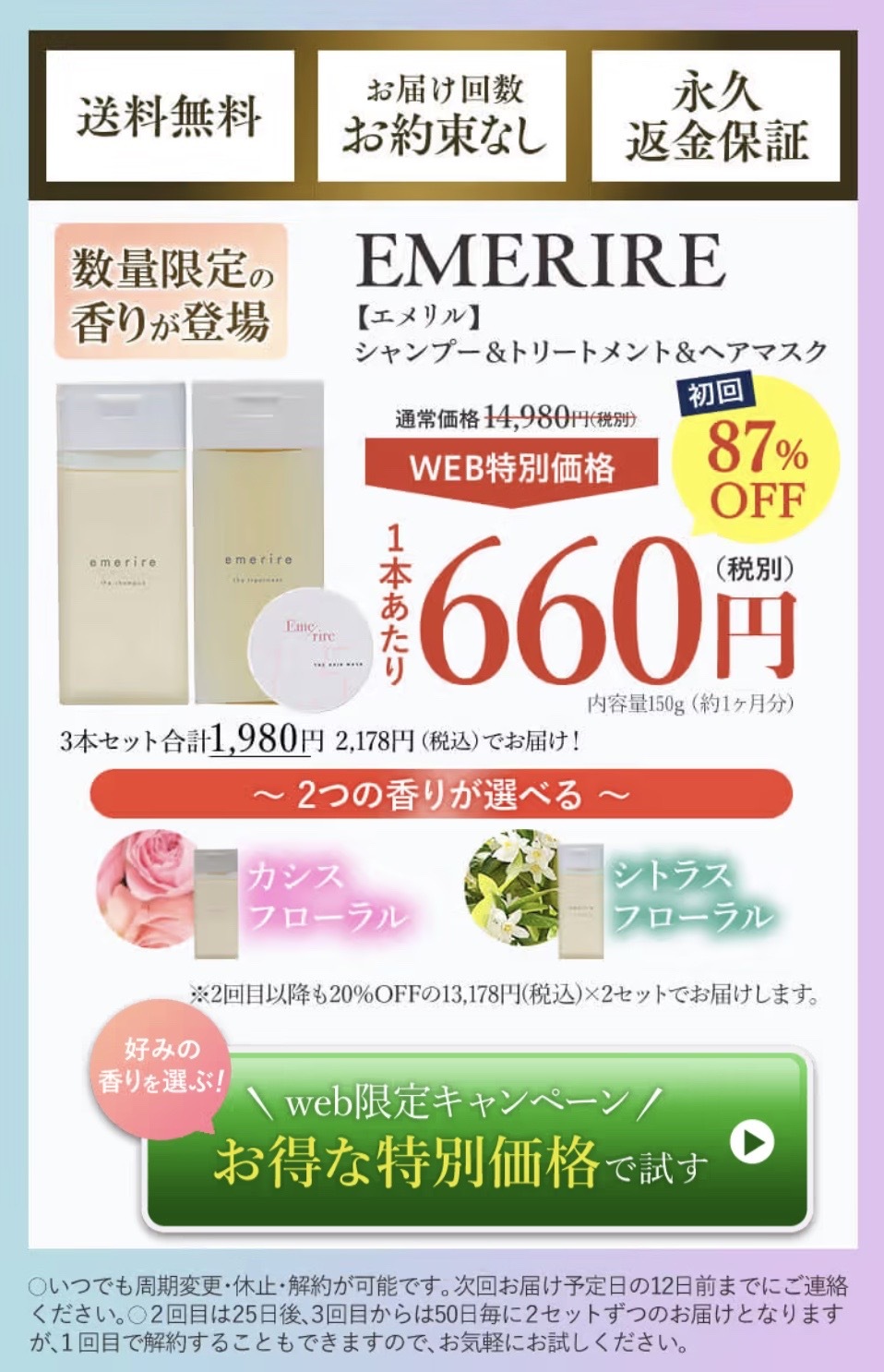 (シャンプー&トリートメント+ヘアマスクまでついてこの値段!)